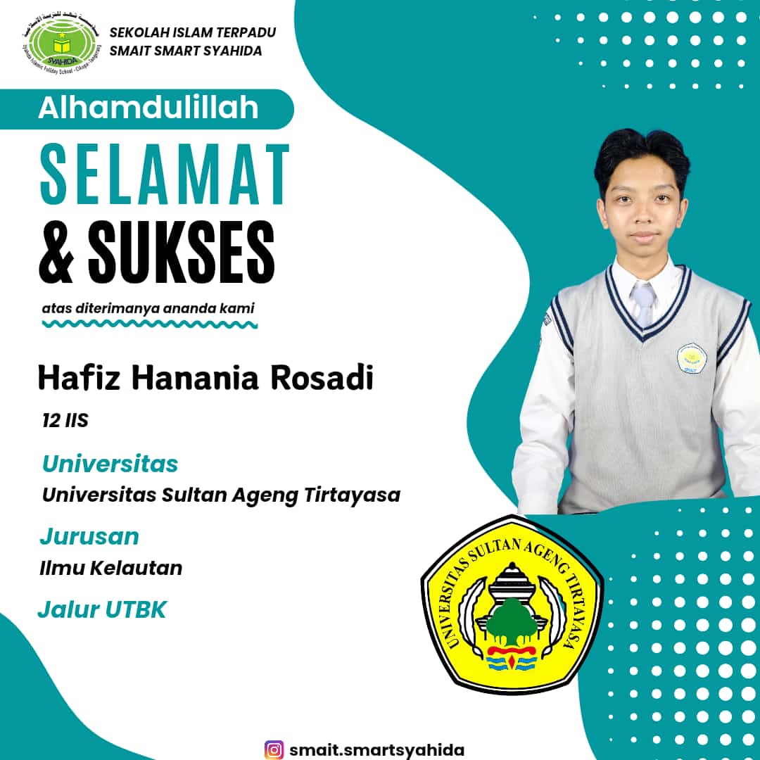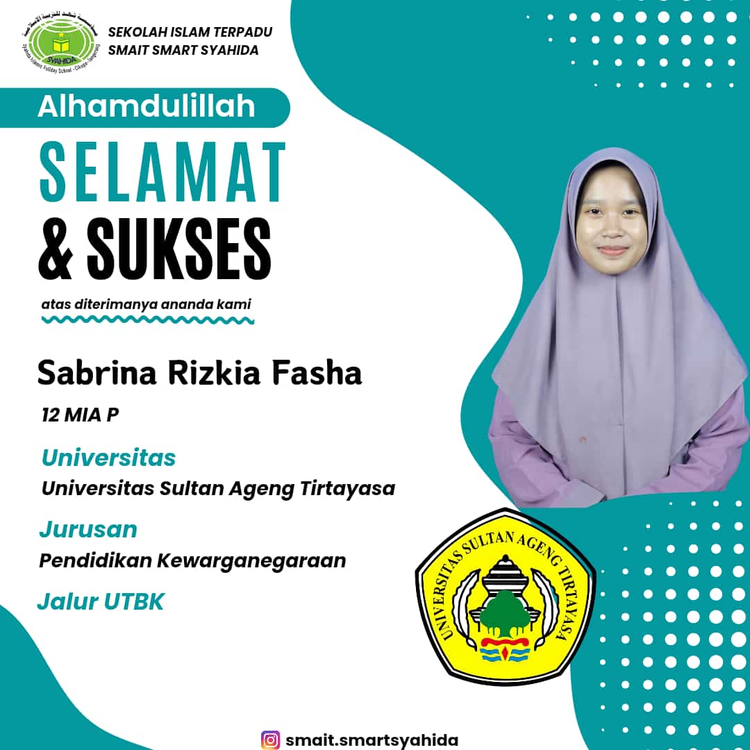 “SMA IT SMART SYAHIDA provides a supportive community where I can both deepen my Islamic knowledge and pursue my academic goals. The teachers are dedicated and passionate about their work. They inspire me to be a better student and person every day. Thanks to SMA IT SMART SYAHIDA, I have made lifelong friends and connections that have enriched my life in countless ways. I highly recommend SMA IT SMART SYAHIDA to anyone looking for a dynamic and engaging learning environment. It's a place where you can truly thrive.”